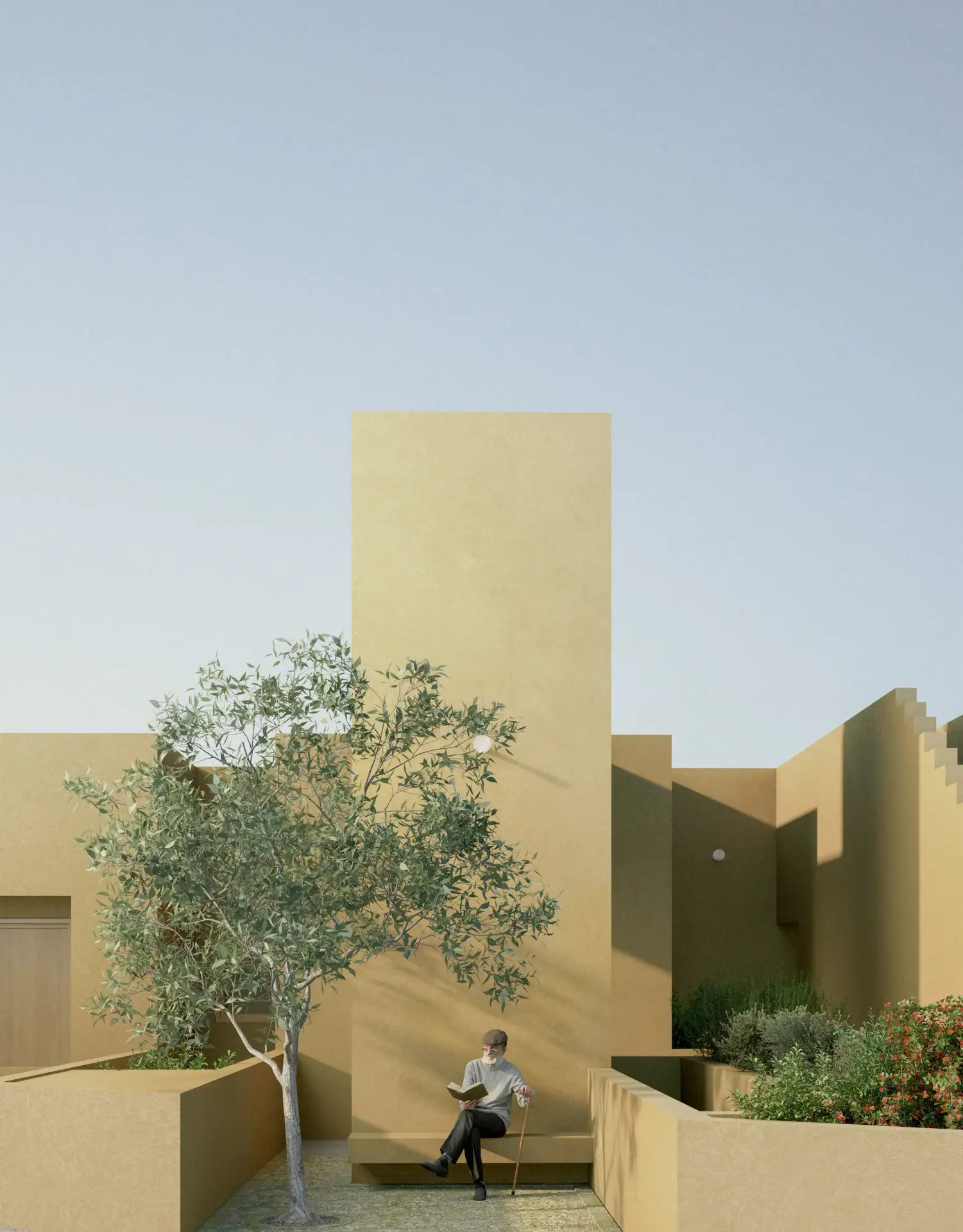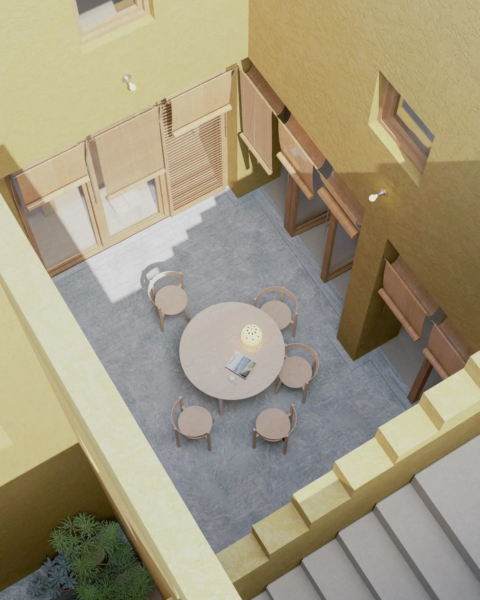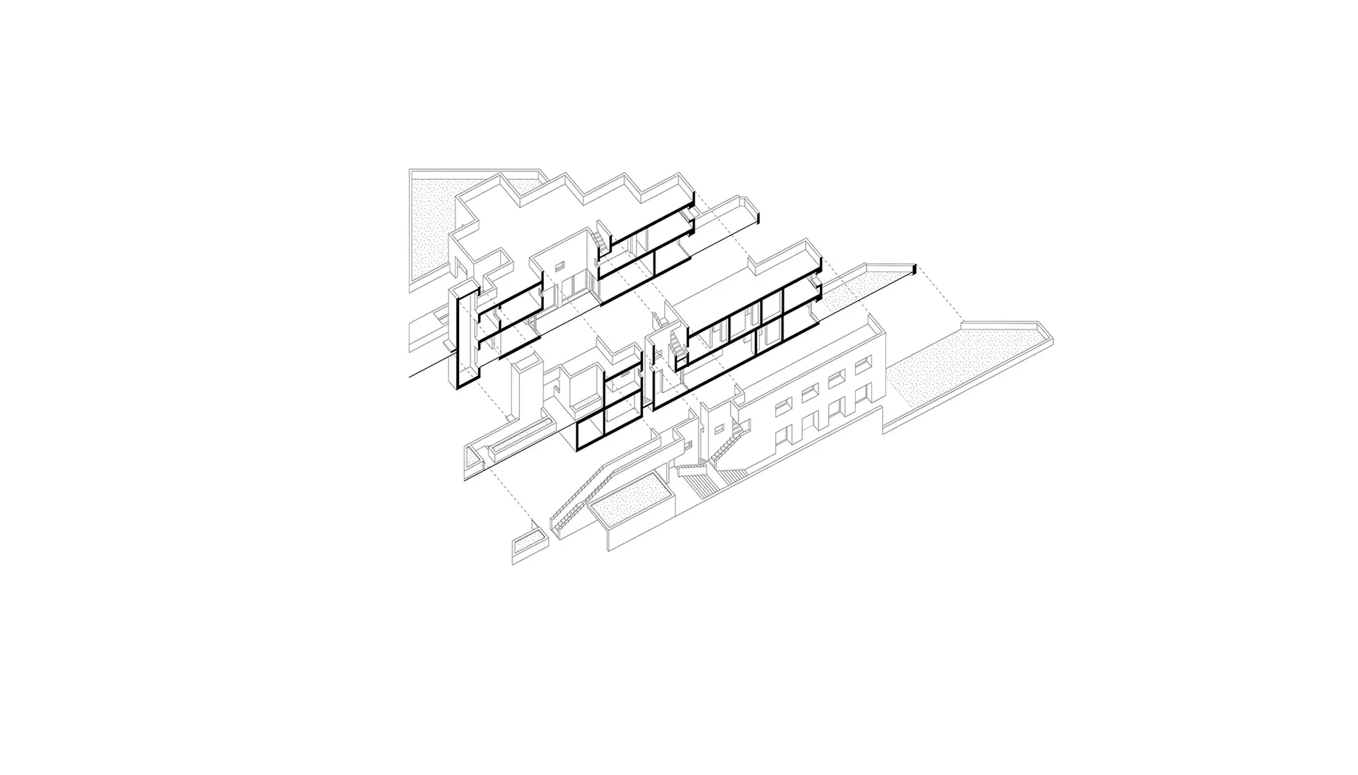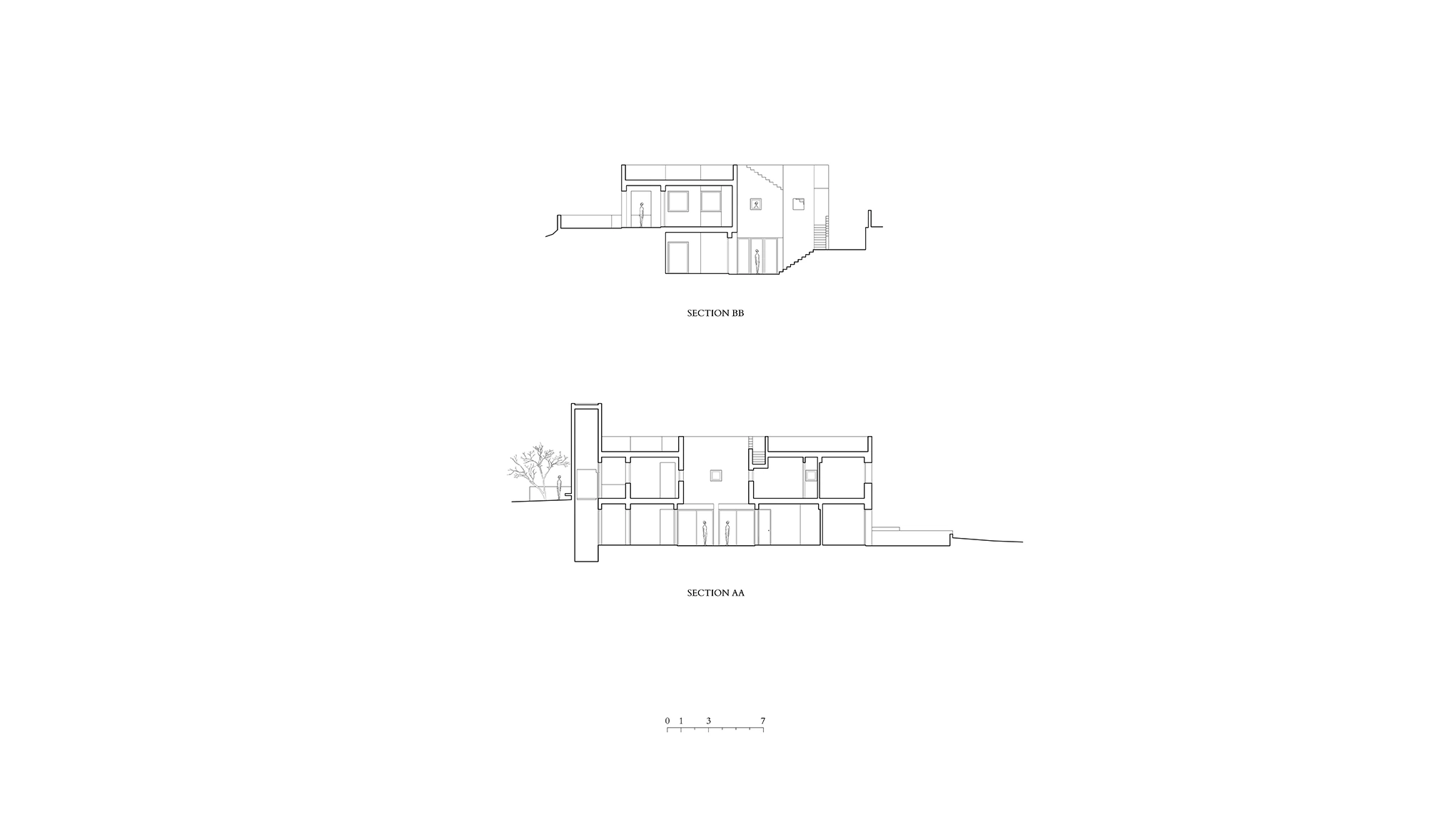 The “Family House” explores the concept of modern collective living. The design includes three residences, which span across the two levels of the building. At the core of the project is the patio, a space for meeting and interaction that adapts to the needs of the users. This space connects the independent units within the building, while their arrangement allows for their complete autonomy around the perimeter of the plot. With respect for the needs of the place and its users, a solution is sought in which the building integrates privacy with communal living.